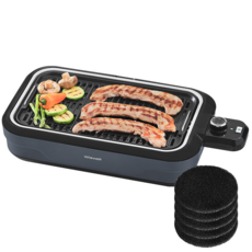 정품 2024년 시즌5 최신형 모델 가방+냄새 필터 11개 구성! 안방 연기 먹는 삼겹살 전기그릴 고기 불판 냄새 안나는 가정용 연기 잡는 그릴 연기 몽구 수세미 증정