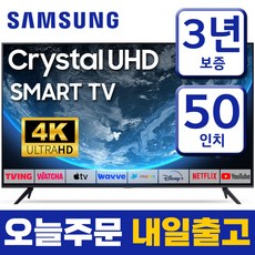 삼성전자 50인치(127cm) 크리스탈 UHD 4K 스마트 LED TV 엘이디 티비 유튜브 넷플릭스 티빙 왓챠 미러링 모텔 숙박업소 관공서 회의실 사무실, 매장직접방문수령