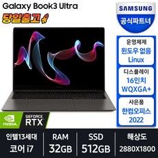 삼성전자 갤럭시북3 울트라 NT960XFS-G72A 인텔 13세대 코어 i7 16인치 노트북, 그라파이트, 코어i7, 512GB, 32GB, Linux