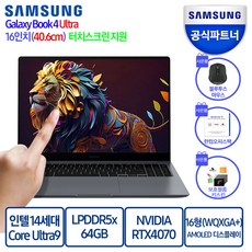 삼성전자 갤럭시북4 울트라 NT960XGP-G72A 인텔 코어 Ultra 7 RTX4050 16인치 크리에이터 전문가 노트북 고사양 AI 노트북, 문스톤그레이, NT960XGL-X72A, 코어 울트라7, 1TB, 32GB, WIN11 Home