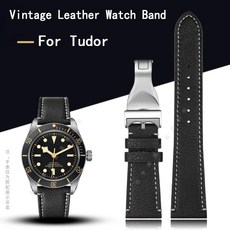 빈티지 가죽 시계 밴드 튜더 블랙 베이 1958 스페셜 GMT 펠라고스 핀 접이식 버클 소가죽 스트랩 20mm 22mm 39mm 41mm, 17)Black silver 20mm