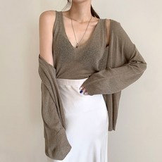 [레티고] 시스루 브이넥 민소매 가디건 세트
