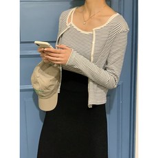 여성 슈퍼텐션 스트라이프 나시 가디건세트