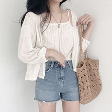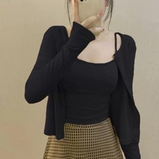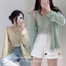 예쁨시전 꾸안꾸 시스루 니트 나시 가디건 세트