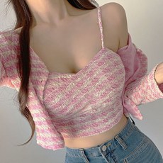 [에이진] 내장캡 트위드 크롭나시 가디건세트 (2colors)