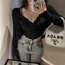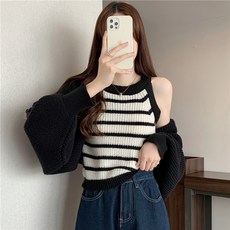 유미르 츄링 여성 루즈핏 볼레로 단가라 홀터 나시 가디건 세트