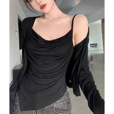 [당일출고/거울증정] t73 루즈 셔링 나시 가디건 세트 (2color)