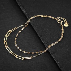 주리에떼 14K 18K 두줄 팔찌 데일리 패션 로즈골드 글램 여성 레이어드 체인 금 팔찌