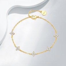 Zebeer 여성 18k 도금 네잎 클로버 실버 팔찌
