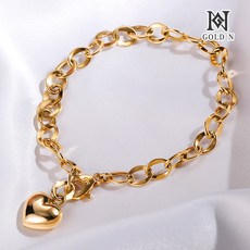 골드앤 18K 딜러브 팔찌 데일리 볼륨 하트참 통통 팬던트 할로우 팔찌