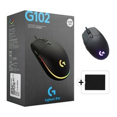 로지텍코리아 정품 로지텍G G102 2세대 Lightsync 게이밍 유선 마우스 PC방에디션+에이투비 마우스장패드 포함(판매자이름 에이투비 확인 후 구매요망), 블랙