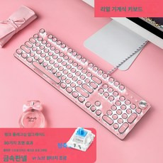 신맹 여자 핑크 리얼 기계식 키보드 청축 펑크 빈티지 라운드 키 초콜릿 오피스 타이핑 게임 키보드, 색깔1, 하나, 하나
