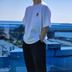 예일 EMBRORIDERY DAN 티셔츠 1P WHITE BLACK 기본 오버핏