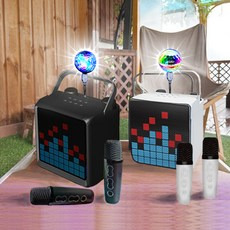 가정용 휴대용 캠핑용 블루투스 미니 노래방 기계 기기 듀얼 마이크 스피커 반주기 엠프+매직 미러볼, 노래방기계 / 블랙