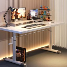돌아라 높이조절 컴퓨터책상 수동 모션데스크 리프트 책상, 흰색