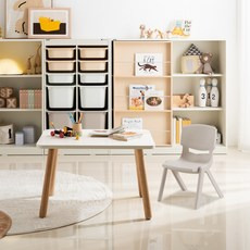 꼼므 1200 아이책상의자세트(화이트 베이지), 화이트책상+베이지의자2