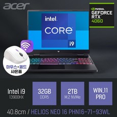 에이서 프레데터 헬리오스 네오 16 코어i9 인텔 14세대 지포스 RTX 4070, 블랙, 2TB, 64GB, WIN11 Home, PHN16-72-9234