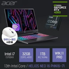 ACER PREDATOR HELIOS NEO 16 코어i9 인텔 13세대 지포스 RTX 4060, 블랙, 1TB, 32GB, WIN11 PRO, 16 PHN16-71-93WL