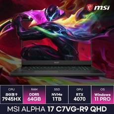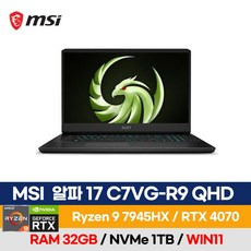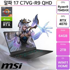 MSI 알파 17 C7VG-R9 QHD 라이젠9 7945HX RTX4070 17.3형 240Hz Wi-Fi 7 (WIN11홈 설치), WIN11 Home, 64GB, 1TB, 블랙