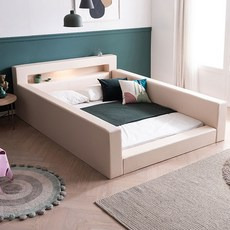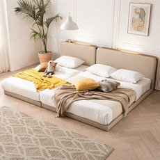 [삼익가구]달링 LED수납형 저상형 패밀리 침대 SS+Q(7존 독립 매트리스), 베이지