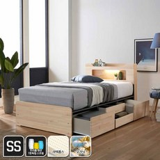 장인가구 스텔라 LED 편백나무원목 4서랍 수납침대SS_포켓20T매트, 내츄럴그레이