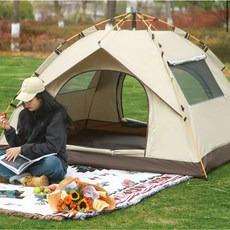 자동 원터치텐트 대형텐트 육각 돔텐트 5-6인용, 아이보리, 5-6