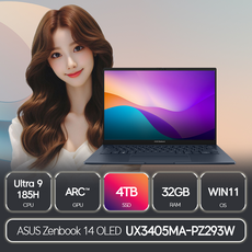 ASUS 젠북 14 OLED UX3405MA-PZ293W, WIN11 Home, 32GB, 4TB, 폰더 블루