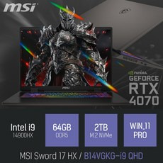 MSI 2024 스워드 17 HX 코어i9 인텔 14세대 지포스 RTX 4070, 코스모스 그레이 + 블랙, 1TB, 32GB, Free DOS, Sword 17 HX B14VGKG-057XKR