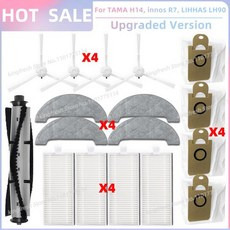 호환 타마 TAMA H14 이노스 innos R7 리하스 LIHHAS LH90 예비 부품 액세서리 메인 사이드 브러시 헤파 필터 걸레 천 먼지 봉투, 4) Set D, 1개