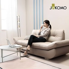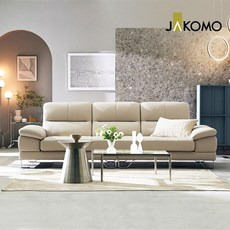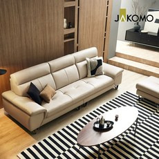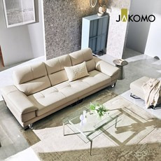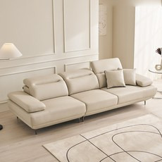 자코모 아르테 4인 기능성 천연면피 소가죽 소파, 크림아이보리