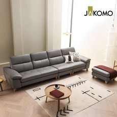 자코모 패시브 4인 천연면피 소가죽 소파+스툴, 그레이