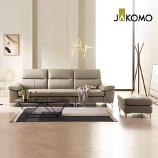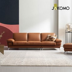 자코모 패시브 4인 천연면피 소가죽 소파+스툴, 라떼