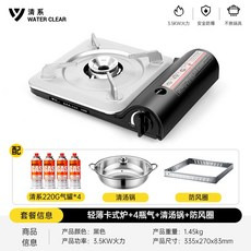 가스레인지 가스렌지 2구 린나이 LNG 하츠 한샘 SK매직, 블랙 + 가스 4병 + 투명 수프 냄비, 1세트
