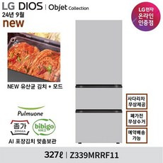 LG전자 디오스 오브제컬렉션 김치톡톡 3도어 327L 스탠드형 김치냉장고 방문설치, 크림그레이, Z339MRRF11
