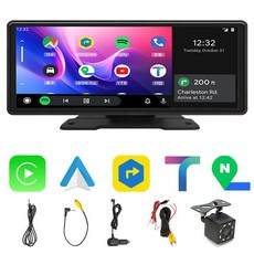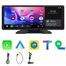 카플레이 모니터 안드로이드 오토 올인원 블루투스 네비게이션 무선 블랙박스 후방카메라, T10