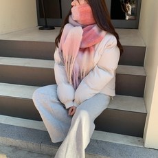 코스 오버사이즈 모헤어 머플러 체크 그라데이션 스카프 목도리