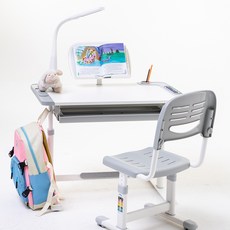 루나랩키즈 아동용 어린이 높이 각도 조절 꾸러기 책상 + 의자 세트, 그레이