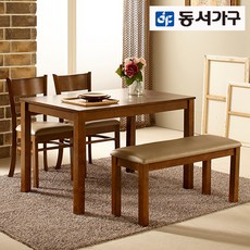 동서가구 원목 우드 4인용 식탁 테이블+의자 2EA+벤치의자 1EA 세트 DF632653 카카오
