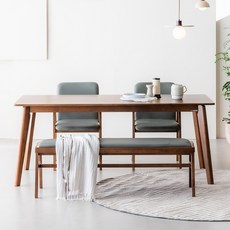 웰퍼니쳐 클로이 고무나무 원목 식탁 4인용 + 의자2p + 벤치 방문설치, 월넛 브라운