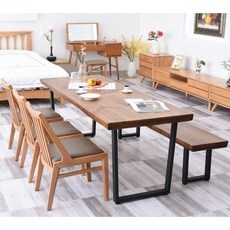 뉴송 우드슬랩 원목 6인용 식탁세트 대형 2000사이즈, 2000테이블