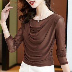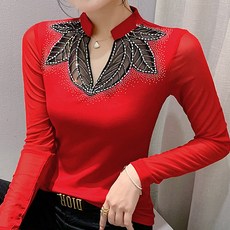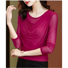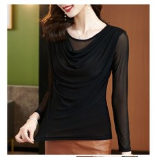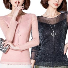 체인지쉬 (change she) 섹시 반짝이 펄 시스루 긴팔 티셔츠 블라우스