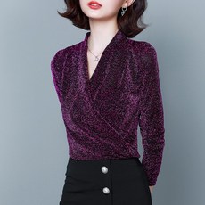 댄스복 상의 티셔츠 여성 펄 브이넥 반짝 랩 라인