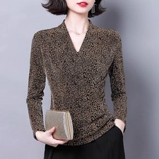 여성 펄포인트 4가지 색상 댄스복 브이넥 티셔츠 Women's T-shirt