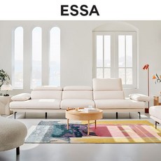 에싸 클로에 4인 헤드기능 리브 패브릭 소파+스툴+쿠션, 크림라떼
