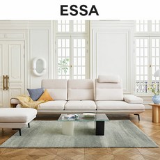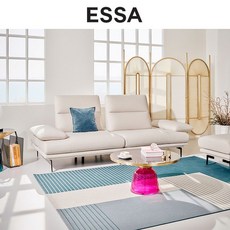 에싸 클로에 3인 스윙기능 리브 패브릭 소파+스툴+헤드레스트, 크림라떼
