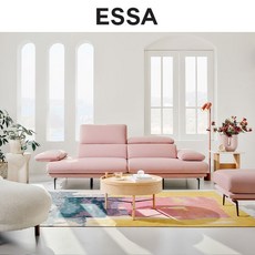 에싸 클로에 3인 스윙기능 리브 패브릭 소파+스툴+헤드레스트, 스윗핑크