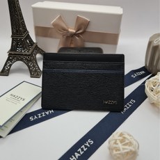 헤지스 고급스러운 네이비 라인배색 소가죽 카드홀더 블랙