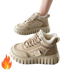 도오빠 페이퀸 여성 기모 키높이 하이탑 운동화 베이지 가죽 스니커즈 5CM 털 안감 워커 방한화 여자운동화 겨울 신발