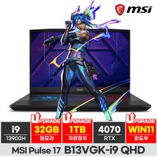 MSI Pulse 17 B13VGK 240Hz QHD 13세대 인텔 i9 RTX4070 140W 고해상도 게이밍 노트북[사은품증정], 펄스17 B13VGK, WIN11 Pro, 32GB, 1TB, 코어i9, 블랙