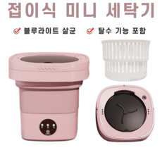접이식 미니 세탁기 탈수 기능 포함 속욧 양말 수건 여행 휴대용 블루라이트 살균 휴대용, 핑크, 4.2L 세탁기 + 탈수